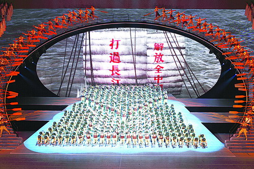 大型音樂舞蹈史詩《復興之路》藝術地再現(xiàn)了從1840年至2009年這169年歷史長路中的重要歷史拐點,形象地說明,是歷史和人民選擇了中國共產黨、選擇了社會主義道路,是中國共產黨領導中國人民走上了民族獨立和民族解放的道路,走上了社會主義革命和社會主義建設的道路,走上了改革開放和現(xiàn)代化建設的道路。