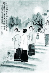 《洛中記聞》說,唐僖宗在中秋節(jié)吃月餅,味道極美,便命御膳房用紅綾包裹月餅賞賜給新科進(jìn)士們。這是我們能夠看到的最早的關(guān)于月餅的記載。到了宋代,月餅有“荷葉”、“金花”、“芙蓉”等雅稱,其制作方法也更加精致。詩人蘇東坡有詩稱贊說:“小餅如嚼月,中有酥與飴!彼质怯退郑嵕褪翘牵湮兜捞鸫嘞忝揽上攵K我院,制作月餅不僅講究味道,而且在餅面上設(shè)計(jì)了各種各樣與月宮傳說有關(guān)的圖案。餅面上的圖案,起初大概是先畫在紙上然后粘貼在餅面上,后來干脆用面模壓制在月餅之上。滿月形的月餅也跟十五的圓月一樣象征著大團(tuán)圓,人們把它當(dāng)作節(jié)日食品,用它祭月,用它贈(zèng)送親友。