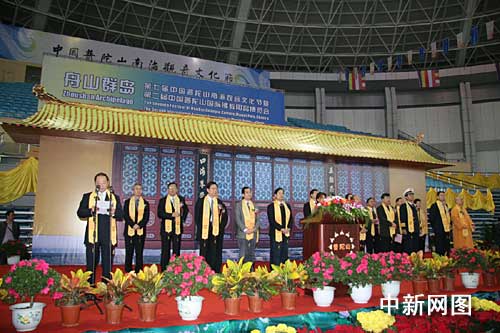 中新網(wǎng)舟山11月15日電(記者 江耘 袁爽 實(shí)習(xí)生 沈蘭)11月15日上午,第七屆中國(guó)普陀山南海觀音文化節(jié)在浙江舟山普陀山上開幕。本屆文化節(jié)吸引了來(lái)自日本、泰國(guó)、菲律賓、希臘等國(guó)家和地區(qū)的人士前來(lái)參加。