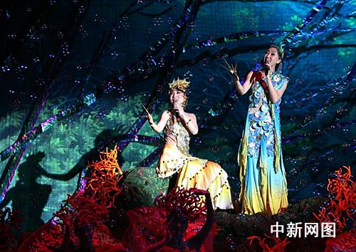 中新網杭州12月2日電(見習記者 趙曄嬌)今晚,大型歌舞《四季情韻》登陸杭州劇院,春季的“水鄉風韻”、夏季的“沙漠風情”、秋季的“無邊風月”、冬季的“北國風雪”等四季美景一一呈現。特別值得一提的是,在夏季篇章,一道高10米、寬20米的瀑布從天而降,一時間水花飛濺,近5分鐘的實景水幕隨著燈光發出閃爍銀光。而壓軸篇《俏江南》創作靈感更是來自浙江籍藝術家陳逸飛生前同名畫作。整場演出讓觀眾如親身置于神州四季風情之中。