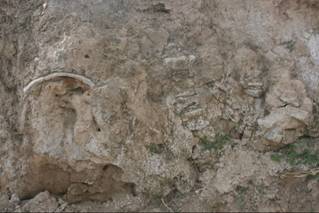 另在遺址東部的取土坑內暴露一陶窯遺跡,陶窯開口距地表1米,窯的剖面為半圓形,直徑2.3米,殘高0.8米,底部紅燒土厚4厘米,上部灰燒土厚3厘米,窯內由磚塊、燒土塊,灰土、繩紋灰陶罐片等。地表散落有大量的遺物。