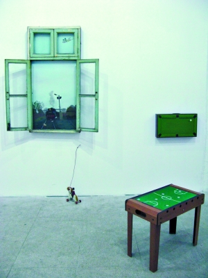 記者了解到,此次展覽以裝置和影像、綜合材料作品為主。夏彥國指出,青年藝術(shù)家是當(dāng)代藝術(shù)以后的主要力量,而裝置、影像也是未來當(dāng)代藝術(shù)發(fā)展的主要方向。比如黑橋藝術(shù)區(qū)的趙一淺在裝置作品《主觀 現(xiàn)場》中將童年記憶中的臺球桌子、足球場地、小玩具及火車搬入美術(shù)館。而生活在798周邊的陳曦、張雪瑞夫婦將展出的影像作品則是循環(huán)往復(fù)地書寫著畢加索的名言:愛情這種事情是不存在的,存在的只是愛情的證據(jù)。