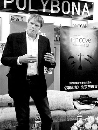在放映活動(dòng)開(kāi)始前,《海豚灣》制片人漢布爾頓接受了數(shù)家媒體記者的采訪,并回答了本報(bào)記者提出的問(wèn)題。
