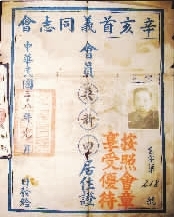 據文獻資料記載,辛亥首義同志會是辛亥革命紀念組織中最有影響的組織。抗戰勝利后,湖北籍的首義人員“覽締造河山之艱難”,擔憂“辛亥史跡,若不及早探詢,據事實錄,轉瞬人事代謝,酋軒何從采輯?”遂在1946年10月10日成立以居正為理事長的辛亥首義同志會。首義同志會創辦了首義學校,招收首義人員遺屬就學。成立辦事處,印制辛亥首義同志會會員名冊,表列姓名、籍貫、住址等名目,并收集首義歷史資料。擁有“兩證”的會員除了可證明參加過辛亥首義革命外,還可享受政府的系列優撫政策。當時登記會員有1644名。目前,根據掌握的名冊,參加革命的“首義老人”已全部辭世。