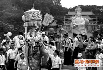 下午1時40分許,從臺灣專程趕來的500信眾,手捧數(shù)十尊天后像隆重入場祭拜。他們穿著傳統(tǒng)服裝,攜帶各種旗幟及獅陣、太子陣、將爺陣等隊(duì)形進(jìn)入天后宮。據(jù)說,昨天午后1時40分是拜祭媽祖的吉時。據(jù)悉,今后臺灣信眾有望繼續(xù)前往南沙天后宮參加?jì)屪嬲Q。