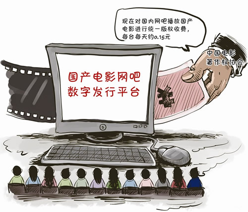 影著協成立后宣布將受權代理所有國產電影版權,并擬從今年起向國內網吧收取國產電影版權費用,具體標準為:由各地區平均每小時的上網費用乘以7.5%,即為每臺電腦每天應繳的金額。以武漢為例,網吧平均上網費為2元/小時,得出的收費標準為每臺每天0.15元。