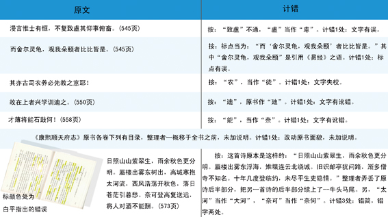 王德怡稱,目前所發(fā)現(xiàn)的閻校本《康熙順天府志》中出現(xiàn)的錯(cuò)誤,集中出現(xiàn)在第七、八卷。清人張吉午《康熙順天府志》原有八卷,現(xiàn)存七卷。從第六卷開始,內(nèi)容開始變得復(fù)雜,處理起來(lái)難度也增加了許多。閻校本出現(xiàn)的錯(cuò)誤大致分為三類:一是錯(cuò)別字;二是標(biāo)點(diǎn)符號(hào)錯(cuò)誤;三是注釋錯(cuò)誤。