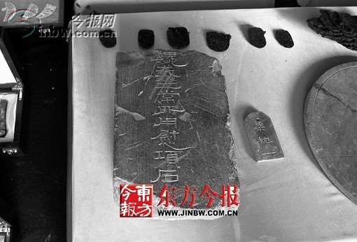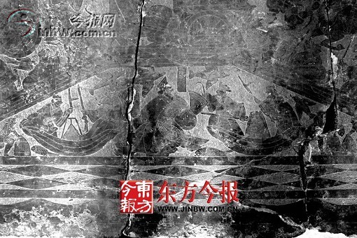 在已發(fā)現(xiàn)的曹操墓畫像石中,比較完整的都是從盜墓賊手中繳獲的。這些畫像石畫工精細嫻熟,有“神獸”、“七女復仇”等圖案,并刻有“主簿車”、“咸陽令”、“紀梁”、“侍郎”、“宋王車”、“文王十子”、“咬人”、“飲酒人”,等等,另外還有門簪、雕龍等殘塊。