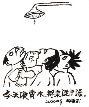 華君武的漫畫,早年長于政治時事漫畫,后期以諷刺畫為主,辛辣諷刺社會上種種丑陋、落后現象。構思巧妙,入木三分,富有幽默感。