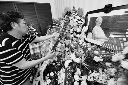 上午家中設立靈堂 微笑的遺像前擺滿鮮花 揮別“漫畫一生”華君武叢中笑