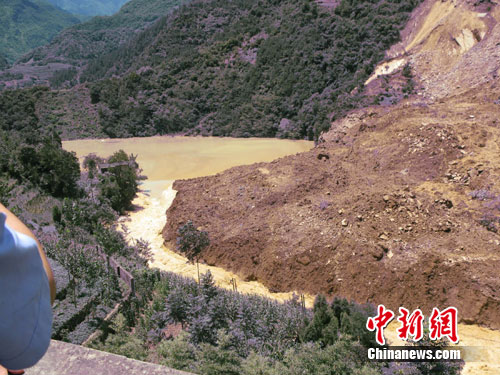 有關專家初步估算,堰塞湖堆積體全部由沙土和頁巖構成,長約120米,高約25米,寬約70米,堆積量約30萬立方米。19日凌晨5時,洪水將堆積體頂部沖開了約20米長的缺口,洪水在不斷外溢,但是隨即被再度垮塌的山體封堵,致使堰塞湖湖口再度變窄,庫內水面變化不明顯。7時20分左右,缺口又被垮塌的泥石封堵。