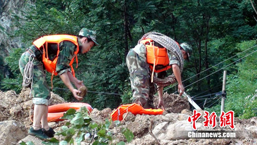 據(jù)介紹,接到搜救命令后,19名官兵迅速挺進(jìn)救援現(xiàn)場,由于受暴雨侵襲,到大竹河鎮(zhèn)臨河村大部分道路交通中斷,通行非常困難,在前往臨河村的途中,險情錯綜復(fù)雜,并不時還有山石墜落,由于對當(dāng)?shù)氐匦蔚孛膊皇煜ぃw搜救隊(duì)員每前進(jìn)一步都帶著威脅,此路段全程12.8公里,再加上沒有交通工具此行顯得更加艱難,爬山,翻越,走水路渡船,雖然,大家的腳上都磨出泡。在歷時4小時后,全體隊(duì)員翻過一個又一個滑坡地段,穿越了一個又一個亂石集結(jié)的險灘激流,終于按照上級規(guī)定的時間準(zhǔn)時到達(dá)目的地。