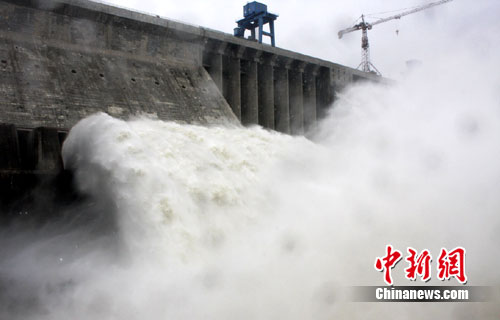 中新網(wǎng)丹江口7月22日電 (陳攀霄)22日13時(shí)24分,丹江口大壩開閘泄洪,這是丹江口大壩主體工程全線貫通以來(lái)首次開閘泄洪。