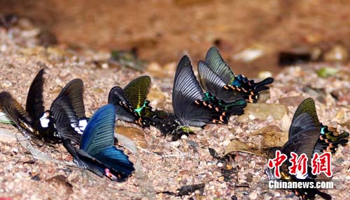 中新網韶關8月5日電(李凌 劉加青 劉倩)仿佛是為了慶祝申遺成功,近日,廣東丹霞山景區生態旅游路段,出現了千百只蝴蝶谷底翩飛的絢麗奇觀。