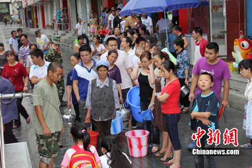 據悉,剛從甘肅舟曲抗洪救災一線歸來的九寨消防大隊官兵獲悉后,迅速出動兩臺水罐車積極尋找水源,在縣城人群密集地區為人民群眾送去干凈的生產生活用水。(完)