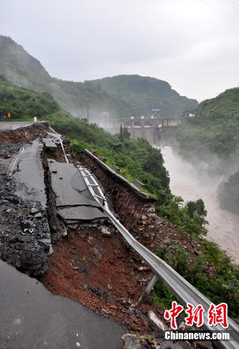 21日上午9時(shí),120米長(zhǎng)的路基深陷深度已達(dá)4—5米,其中25米路基和道路內(nèi)側(cè)臨時(shí)車(chē)道也垮塌,滑坡同時(shí)還引起上行線(xiàn)路出現(xiàn)裂縫,國(guó)道108線(xiàn)交通已完全中斷。該路段位于花灘電站水庫(kù)大壩下方、滎河河道正上方,地勢(shì)陡峭,一旦出現(xiàn)大面積塌方,泥石將直接滾入河道,很可能形成堰塞湖,后果不堪設(shè)想。