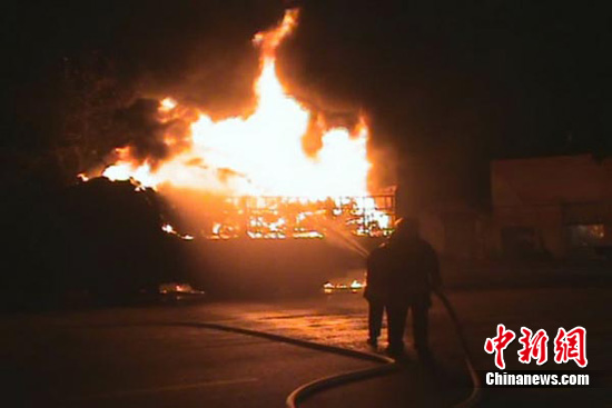 中新網淮安9月13日電(衡中強 閆大偉 朱曉穎)12日晚19時09分,江蘇淮安市西安路工業園區附近一輛大貨車突然起火,車上托運的100多輛摩托車、電瓶車全部被燒毀。