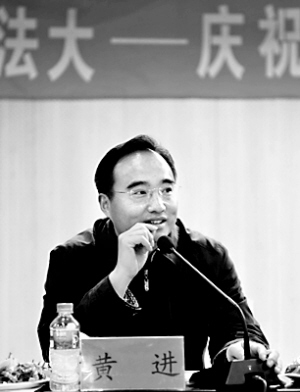 “請問黃校長的辦學目標是什么?有何治校方針?”不少政法大學的師生熱切地想了解新校長為學校帶來的新氣象,黃進的回應擲地有聲:“我們要把法大辦成開放式、國際化、多科性、研究型、有特色、高水平的大學!薄胺ù笠婪ㄖ涡#