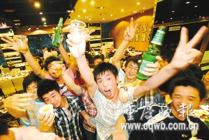 昨下午6點(diǎn)剛過(guò),主城各區(qū)繁華路段,處處可見(jiàn)考生們聚會(huì)歡慶場(chǎng)面。