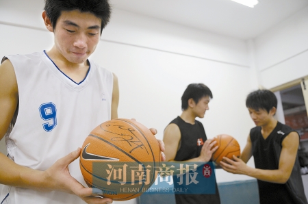 喝過茶,四個大男孩算是正式投入科比門下。隨后,他們送上事先準備好的拜師禮:信陽毛尖和一對中國結,中國結上印有科比全家福照片。洋師傅大喜過望,回贈了幾位“大弟子”簽名籃球和文化衫。如今這些已成了鄭大籃球隊的寶貝。