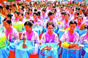 本報訊 (記者劉顯仁 通訊員田禾、楊靜) “珠村大祠堂,要擺大七娘。小女勤乞巧,男兒換靚裝……”昨天上午,用現代曲譜吟唱古詩《珠村七夕吟》聲中,2009廣州乞巧文化節在天河區珠村七夕文化廣場開幕,共有近萬名市民群眾觀看了開幕式。