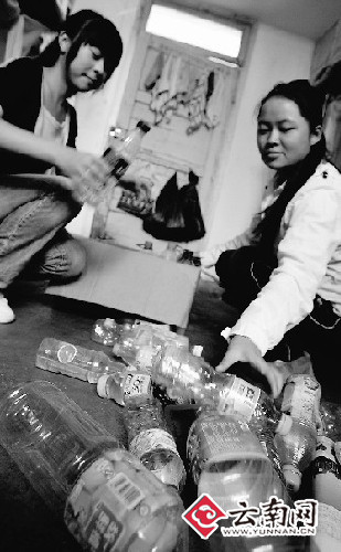近日,記者路過昆明學(xué)院醫(yī)學(xué)院(原昆明市衛(wèi)生學(xué)校)時(shí),遇見三五成群的學(xué)生把廢棄的飲料瓶拿繩子拴著抬著走出校門,一打聽才知道原來是學(xué)生們撿飲料瓶賣后換成錢當(dāng)班費(fèi)。學(xué)校黨委副書記曹全科昨天告訴記者:“這種做法是10年前就開始養(yǎng)成的,如今學(xué)生撿飲料瓶攢班費(fèi)在學(xué)校里蔚然成風(fēng),全校28個(gè)班級的2000多名大學(xué)生都自覺撿瓶子、賣瓶子,錢拿來當(dāng)做班費(fèi)。”