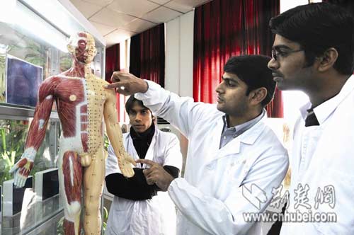 “就像熱干面只在湖北吃的到,想學中醫只有來中國才能學到最正宗的。”李國偉笑著說。“我想回國開一家醫院。”馬瑞信心十足地告訴記者,當初來中國學醫是為了畢業時好找工作。但現在他覺得自己學到了很多知識,就想和來中國留學的朋友們一起,回國開一家專業的中醫院。“雖然我們國家的人很相信中醫,但還是有顧慮,我回國后要說服他們。”李國偉告訴記者,因為對一些血液傳染病的害怕,他們國家很多人對中醫里的針灸比較抗拒,擔心會像打針一樣扎出血。“我要用學到的知識糾正他們對中醫的誤解,讓更多的人了解中醫。”李國偉自信地說。