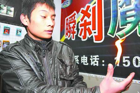 昨日,在許昌一家魔術俱樂部,胡陽陽向記者展示了火把變玫瑰的魔術(如圖)。