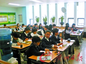 記者參觀了成立于1961年的韓國慶熙小學(xué),這個(gè)學(xué)校目前共有學(xué)生720人,六個(gè)年級,每個(gè)年級有4個(gè)班。據(jù)該學(xué)校的副校長介紹,該學(xué)校最大的特點(diǎn)是外語教學(xué),記者參觀的當(dāng)日,正遇到小學(xué)三年級的學(xué)生英語測試,采用的是老師與學(xué)生對話的形式。靈活實(shí)用的方法是值得我們國內(nèi)的學(xué)校學(xué)習(xí)和借鑒的。
