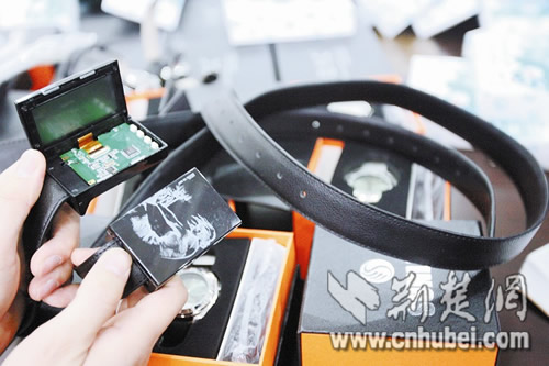 皮帶也能偽裝成作弊設備:皮帶頭其實是接收器,旁邊設有一個開關,打開后可以向外翻下一個液晶屏。