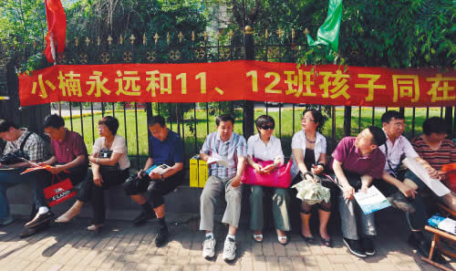在43中學考點前,一條紅色標語讓人關注。“小楠永遠和11、12班的孩子同在!”。這位小楠是誰?一位家長告訴記者,小楠是考生的班主任,他們是120中學的。小楠老師班里同學被分到不同的兩個考點,小楠老師去11中學考點陪考了,怕冷落了這邊考點的學生們,特意做了條幅。“這位老師真好,人不到心到了。孩子看到條幅也會覺得踏實的。”一名學生家長這樣說。