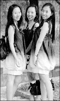 統(tǒng)一的湖藍(lán)色花苞裙,穿在一樣身高相貌、長(zhǎng)發(fā)飄飄、笑靨如花的王安伊、王安冉、王安琪三姐妹身上,一股清涼之風(fēng)撲向眼簾。