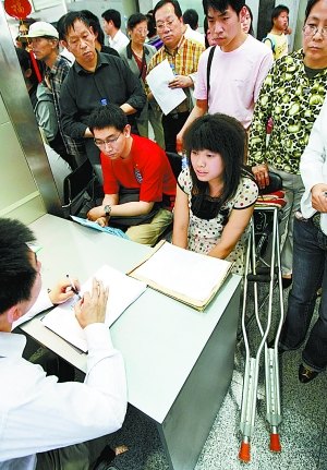 招聘會8時30分開始。7時許,北京人才服務中心就已經迎來了不少殘疾人。據市殘聯職業介紹中心主任李雪梅介紹,這里面還包括來自全國20多個省市的外地殘疾大學生。