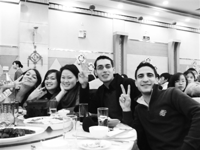 “ 這個是基圍蝦,那個是甜湯”,已經(jīng)在華中大MBA漢語班學(xué)習(xí)了一年半的黎巴嫩小伙子Chadi專門為自己起了個中文名字——夏小龍。雖然是第一次參加中國式團(tuán)年飯,但在他所在的那一桌,儼然一個中國通,不時給同桌留學(xué)生報菜名,回答他們的疑問。他笑著告訴記者,他很喜歡吃中國菜,在家鄉(xiāng)時也常去中式餐館吃飯。現(xiàn)在就像過自己國家的節(jié)日一樣,很happy(快樂)。