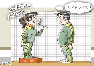 對于合理性的要求,則應該再仔細商榷。“女孩在升入高中或市管各類中專、職業(yè)學校時,筆試總成績加2分。”從現實來看,女孩的考試能力并不比男孩差,這樣的差別待遇,可能不具有說服力。