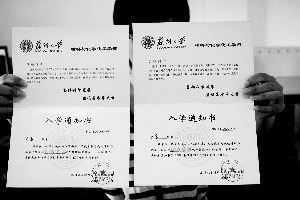 收到兩份不同專業(yè)通知書,校方稱全是假的