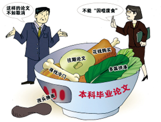 華南理工大學(xué)新聞學(xué)院05級的小旭談起自己去年寫畢業(yè)論文的情形,百感交集:“新聞專業(yè)本科畢業(yè)論文確實很難在理論上有突破或創(chuàng)新。對于本科生,要對新聞學(xué)研究或新聞學(xué)史論有什么突破,太勉為其難。”中大新聞系畢業(yè)的小鄭認(rèn)為,“應(yīng)該取消,我們對新聞的學(xué)習(xí)只是簡單的學(xué)習(xí),做新聞只有在媒體實習(xí)中積累實戰(zhàn)經(jīng)驗;另一方面,很多畢業(yè)生的論文都是從網(wǎng)上東拼西湊出來的,對自己的論文根本沒有進(jìn)行深入的了解。”