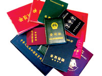 說著,周女士拿出來大小不一、顏色不同的證件十余本,摞在一起足有20厘米高。記者看到,里面除了幾個專業(yè)證件,還有“涉外秘書資格證”、“廣告從業(yè)資格證”、“健美操證”等。但諷刺的是,她現(xiàn)在從事的工作卻和其中任何一個證書都沒有關(guān)系。