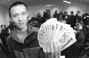 記者在現場注意到,部分學生代表拿到同學們預訂的火車票后仍愁眉不展。環境學院07級碩士研究生石昕就拿著一疊票在登記表上核對、打鉤,不時嘆息。他們班26人訂票,只拿到了14張票,其余都沒有!安皇菦]票,是有票他們不要!笔空f,沒訂到票的同學多半是往重慶、哈爾濱等方向的,都是要求太高,指定要硬臥,坐票都不考慮。這讓火車站工作人員為了難,這些地區火車票本身就很緊,臥鋪票更加有限,非臥鋪不要的要求根本無法滿足。
