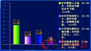 中國青少年基金會秘書長涂猛曾透露,據(jù)青基會調(diào)查,60%以上的農(nóng)村學(xué)生在接受完義務(wù)教育之后,不能接受高中和大學(xué)教育而回鄉(xiāng)務(wù)農(nóng)或外出打工。