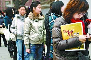 本報訊 今天上午9時,2009年女大學生專場招聘會在位于德勝門的北京畢業生就業市場舉行。離招聘會開始還有半小時,門前卻已蜿蜒排起了幾百米的長隊。截止記者發稿時,應聘學生已突破了四千人。