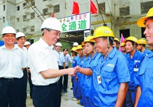 李克強(qiáng)來到正在建設(shè)中的管莊保障性住房項(xiàng)目,看望并慰問一線建筑工人、技術(shù)人員和管理人員,鼓勵他們精心施工、把好質(zhì)量關(guān),把這一重大民生工程建設(shè)好,讓群眾住得安心、舒心。遠(yuǎn)洋地產(chǎn)行政總裁李明在現(xiàn)場向李克強(qiáng)匯報了項(xiàng)目進(jìn)展情況。