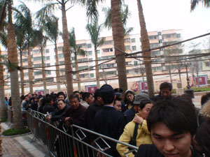 剛來海南不久的吳先生排隊(duì)拿號似乎很有經(jīng)驗(yàn)。他跟幾個朋友提前幾天就聯(lián)系好了幾名農(nóng)民工“排隊(duì)”。每個農(nóng)民工200元,從18日晚七八點(diǎn)鐘開始排,排到第二天早上七八點(diǎn),再來換班親自排隊(duì)。盡管如此,吳先生也郁悶不已。原本他以為自己排在比較靠前的位置,但開盤前時,開發(fā)商打開第一道門,里面已經(jīng)排著六七十個人了。