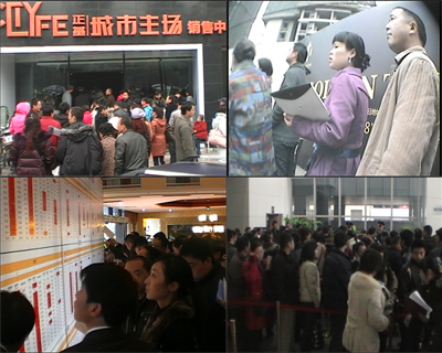 2009年11月28日,星期六的早晨,當很多人還在睡夢中的時候,位于成都市錦江區的牛沙路已經熱鬧起來。今天是這個叫做鎦金歲月樓盤開盤的日子,上午不到8點,購房者就已經排起了長龍,浩浩蕩蕩的隊伍一眼望不到邊。而在簽到處,不斷地還有購房者趕來。