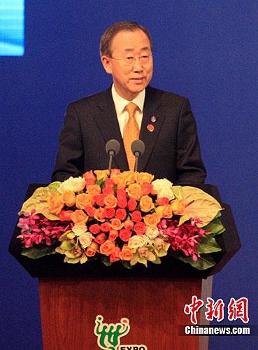潘基文說,自從今年5月份以來,全世界的人民都在討論著一件非常卓越的歷史盛事,他們聽說了眼花繚亂的技術(shù),豐富的文化活動,群星薈萃的歌舞表演,所有這些都在美麗絢爛的展館里得到了呈現(xiàn)。于是他們來了,來到了上海,他們從世界各地紛至沓來,他們親眼目睹了這一盛事,7000多萬人次來自于幾十個國家,他們并沒有失望,恰恰相反,他們感到了驚嘆和振奮。中國中央政府、上海市政府以及國際展覽局,理應(yīng)得到這更高的贊譽。