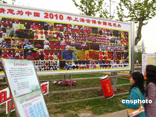 | 4月14日,上海植物園2007大型春季花展,吸引了大量的市民和游客前來參觀。其中“我最想在世博會上看到的花卉”、“請您為中國2010年世博會篩選花卉”展板格外引人注目。據悉,花展期間還進行草花品種篩選有獎調查活動,并由花卉專家對篩選出的草花品種進行評審,從中推薦出適合上海生長的草花品種,這些品種很有可能出現在2010年的上海世博會上。圖為游客在細看花卉展品圖片。中新社發 嚴大明 攝