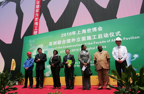 5月15日,由1萬多件鋼結(jié)構(gòu)搭起的非洲聯(lián)合館已挺立在世博園區(qū)內(nèi)。樹木、沙漠、海鷗、動(dòng)物、建筑……這些富有強(qiáng)烈非洲特征的元素將呈現(xiàn)在非洲聯(lián)合館的外立面上,勾勒出非洲大陸?yīng)毦叨鄻有缘娘L(fēng)貌,展現(xiàn)非洲的古老文明和勃勃生機(jī)。在15日舉行的非洲聯(lián)合館外立面施工啟動(dòng)儀式上,記者獲悉非洲聯(lián)合館外立面設(shè)計(jì)方案已正式確定,并將全面實(shí)施。