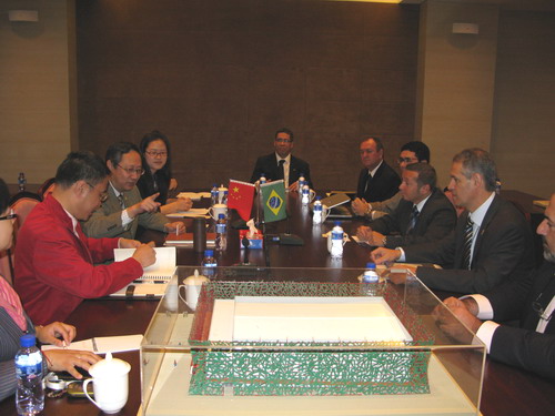 5月20日上午,上海世博局副局長黃健之會見了來訪的上海世博會巴西展區總代表兼巴西出口與外貿投資促進局局長亞力山德羅•特謝拉一行,雙方就巴西參展上海世博會等事宜進行了交流。