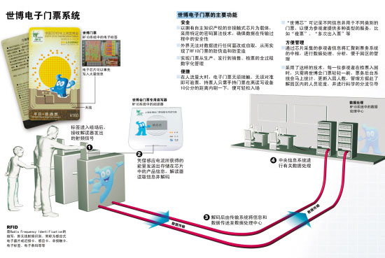 ●上海世博會會期半年,預計可吸引全世界7000萬人次的參觀者,其票務系統被稱為有史以來最大規模的電子標簽門票應用案例。