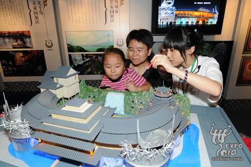一位老人帶著他的小孫女在貴州館模型前仔細(xì)觀賞,“孩子你看,這個(gè)是黃果樹瀑布,這個(gè)是苗族女孩子在節(jié)日里穿的衣服,這個(gè)是……”老人表示,這是一個(gè)很好的機(jī)會(huì),帶孩子來了解一下自己年輕時(shí)工作的地方,也讓她能夠多增長一些世博知識(shí)。更重要的是,貴州可以說是他的第二故鄉(xiāng),前來參觀也是為了對(duì)貴州參展表示支持。
